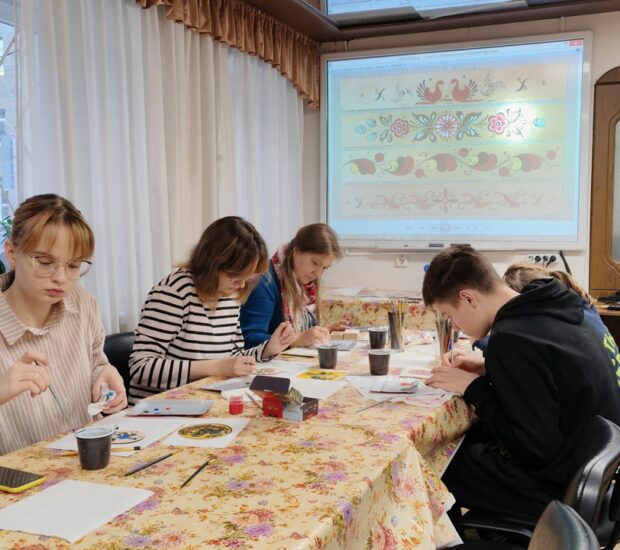 Мы побеседовали с гостями про такие крупные центры народного искусства как Хохлома, Городец, Северная Двина и не только.Участники попробовали себя…