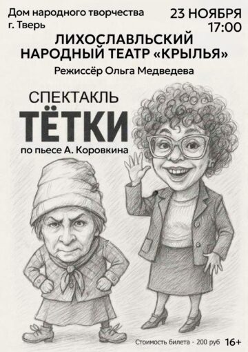 Все мероприятияРежиссёр спектакля — Ольга Медведева.Идея сюжета пьесы «Тётки» современного драматурга, сценариста, писателя, актёра Александра Коровкина взята из знаменитой голливудской комедии…