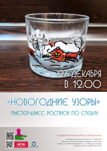 Все мероприятияДорогие друзья, 27 декабря в 12:00 состоится мастер-класс по росписи по стеклу «Новогодние узоры»! Занятие проводится для начинающих. (6+)На нашем…