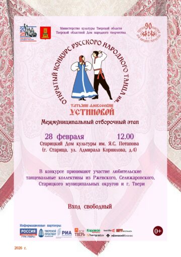 В 2026 году c февраля по апрель Тверской областной Дом народного творчества проводит XX открытый конкурс русского народного танца им….