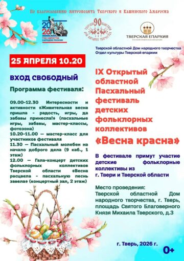 с 9 апреля 2026 г. в Музейно-выставочном центре им Л. Чайкиной Тверского областного Дома работает пасхальная выставка «Дары приносящая».Пасха –…