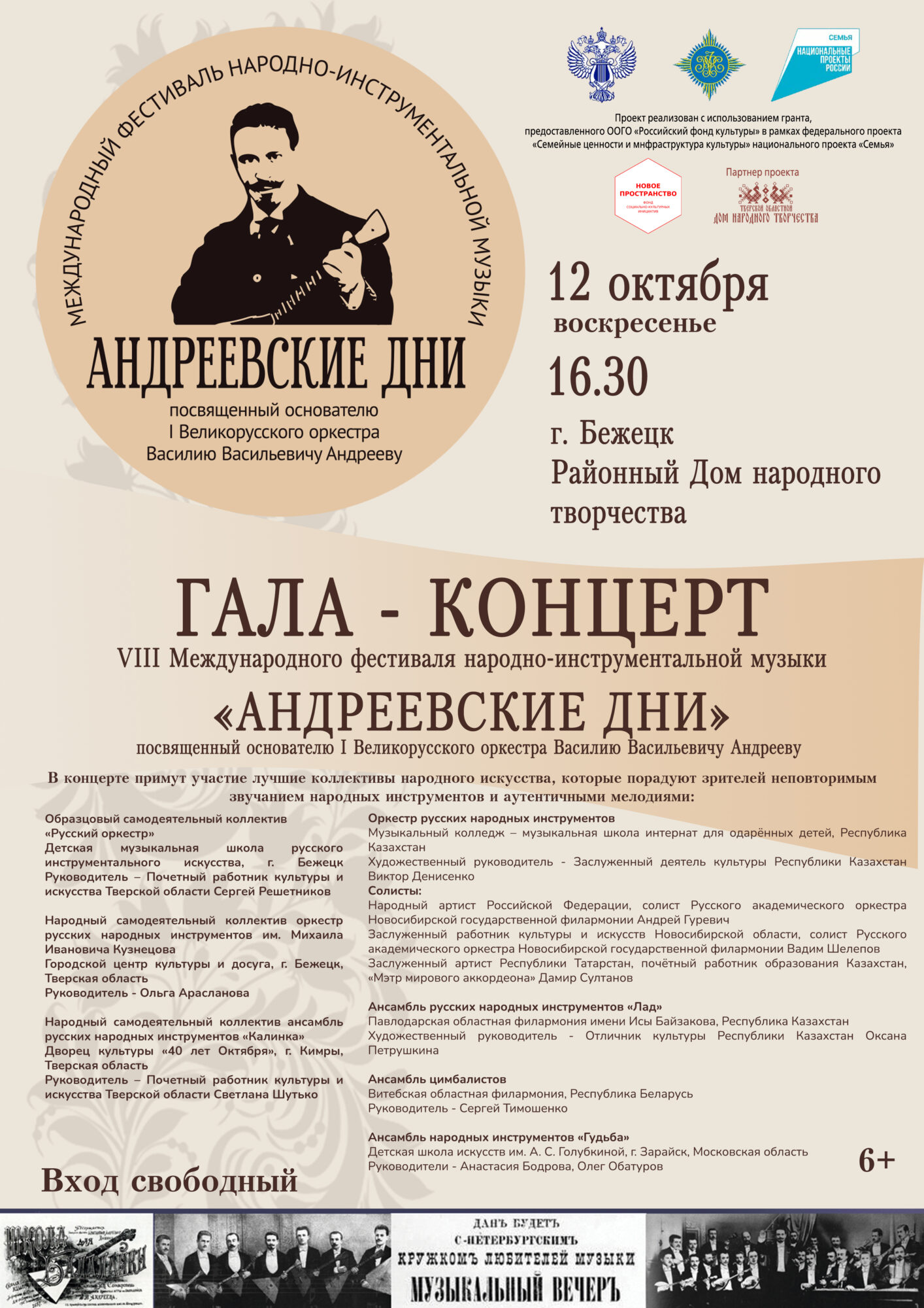 - Муниципальный оркестр русских народных инструментов им. В.В. Андреева (Досуговый центр «Истоки», г. Тверь);