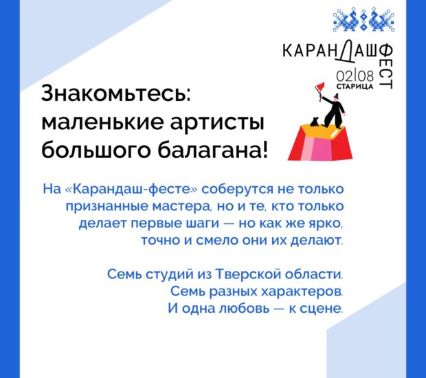 2 августа, Старица. «Карандаш-фест» — фестиваль для всех детей, которые устали быть взрослыми.На «Карандаш-фесте» соберутся не только признанные мастера, но…