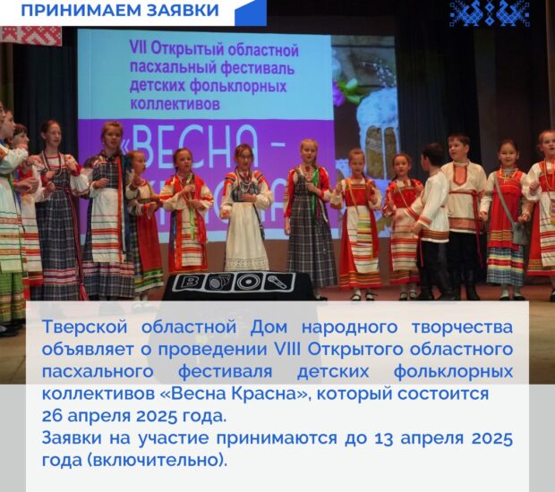 Тверской областной Дом народного творчества объявляет о проведении VIII Открытого областного пасхального фестиваля детских фольклорных коллективов «Весна Красна», который состоится…