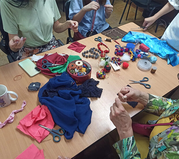 Под руководством опытного наставника каждый смог создать уникальный аксессуар для своего оригинального неповторимого образа — текстильные бусы. Занятие провела Баринова…