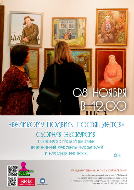 Дорогие друзья, 8 ноября в 12:00 приглашаем на сборную экскурсию по Всероссийской выставке произведений художников-любителей и народных мастеров, посвящённой 80-летию Победы в Великой Отечественной войне 1941-1945 годов «Великому подвигу посвящается…»!