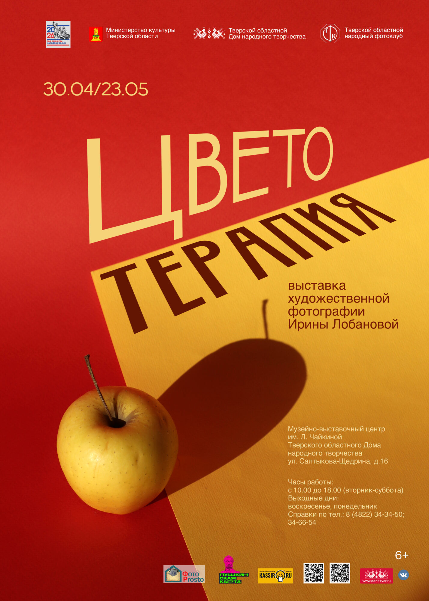 Выставка будет работать до 23 мая 2026 года в Музейно-выставочном центре им. Л. Чайкиной Тверского областного Дома народного творчества (ул. Салтыкова-Щедрина, д. 16).