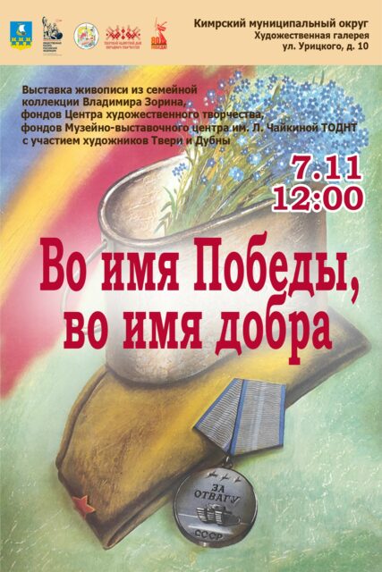 07 ноября в 12.00 Художественная галерея (ул. Урицкого, д. 10) приглашает на торжественное открытие выставки живописи из семейной коллекции государственного и политического деятеля России, доктора политических наук, профессора МГУ им. М. В. Ломоносова, главного научного сотрудника Института этнологии и антропологии РАН, члена президиума Совета при Президенте Российской Федерации по межнациональным отношениям. Владимира Юрьевича Зорина, выставочных фондов Тверского областного Дома народного творчества, фондов Центра художественного творчества, художников Твери и Дубны «Во имя Победы, во имя добра».