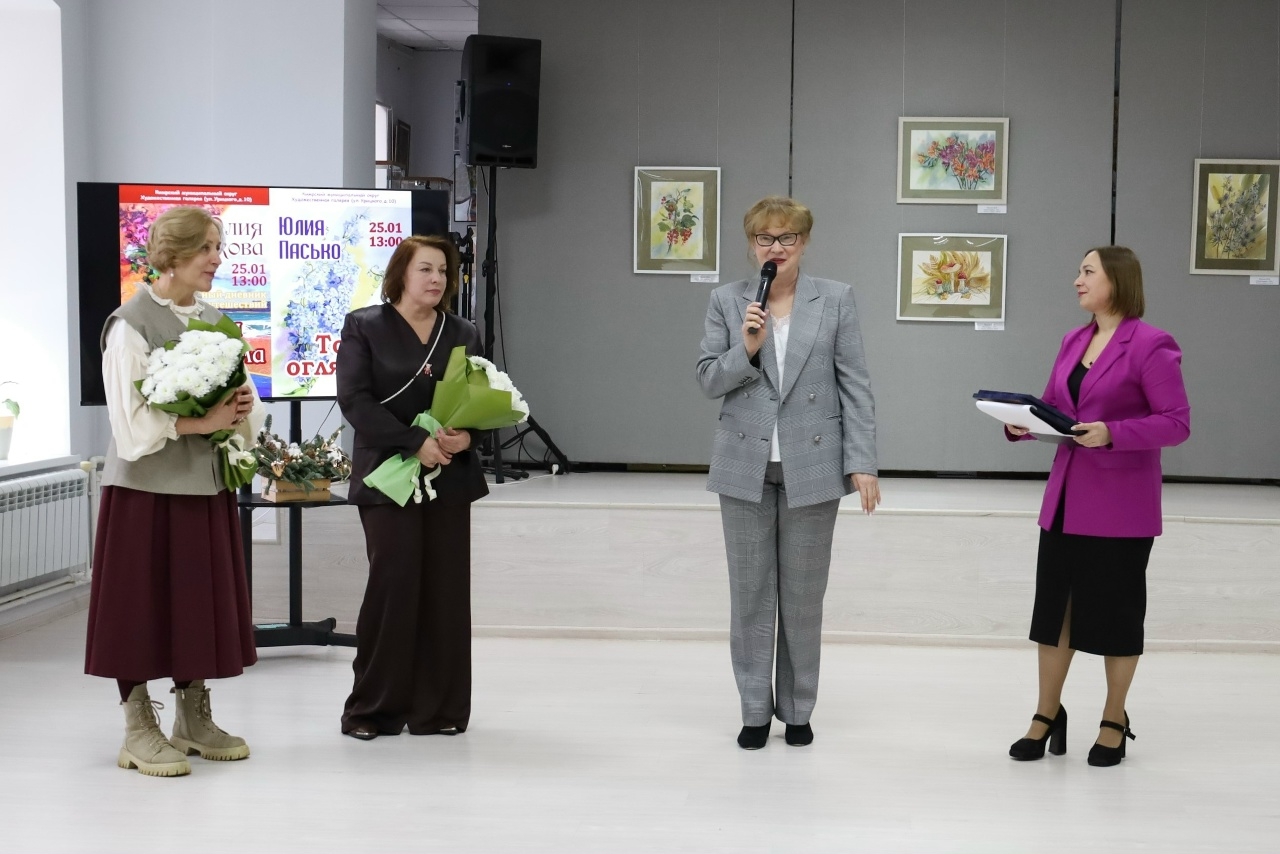 Директор Центра художественного творчества Светлана Анатольевна Шурлина выразила благодарность художницам и подчеркнула, что выставки Ольги Большаковой и Алены Хазановой подарят зрителям множество эмоций и впечатлений.