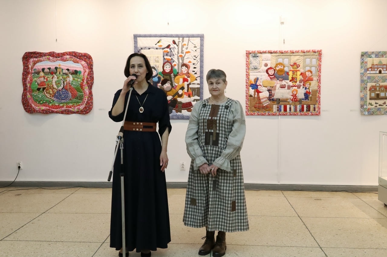 Пятого февраля в дружеской атмосфере Музейно-выставочного центра им. Лизы Чайкиной Тверского областного Дома народного творчества состоялось долгожданное открытие совместной выставки талантливых мастеров – мастера лоскутного шитья Людмилы Петровны Булановой и мастера резьбы по дереву Вячеслава Николаевича Плёнкина «Уютные истории».