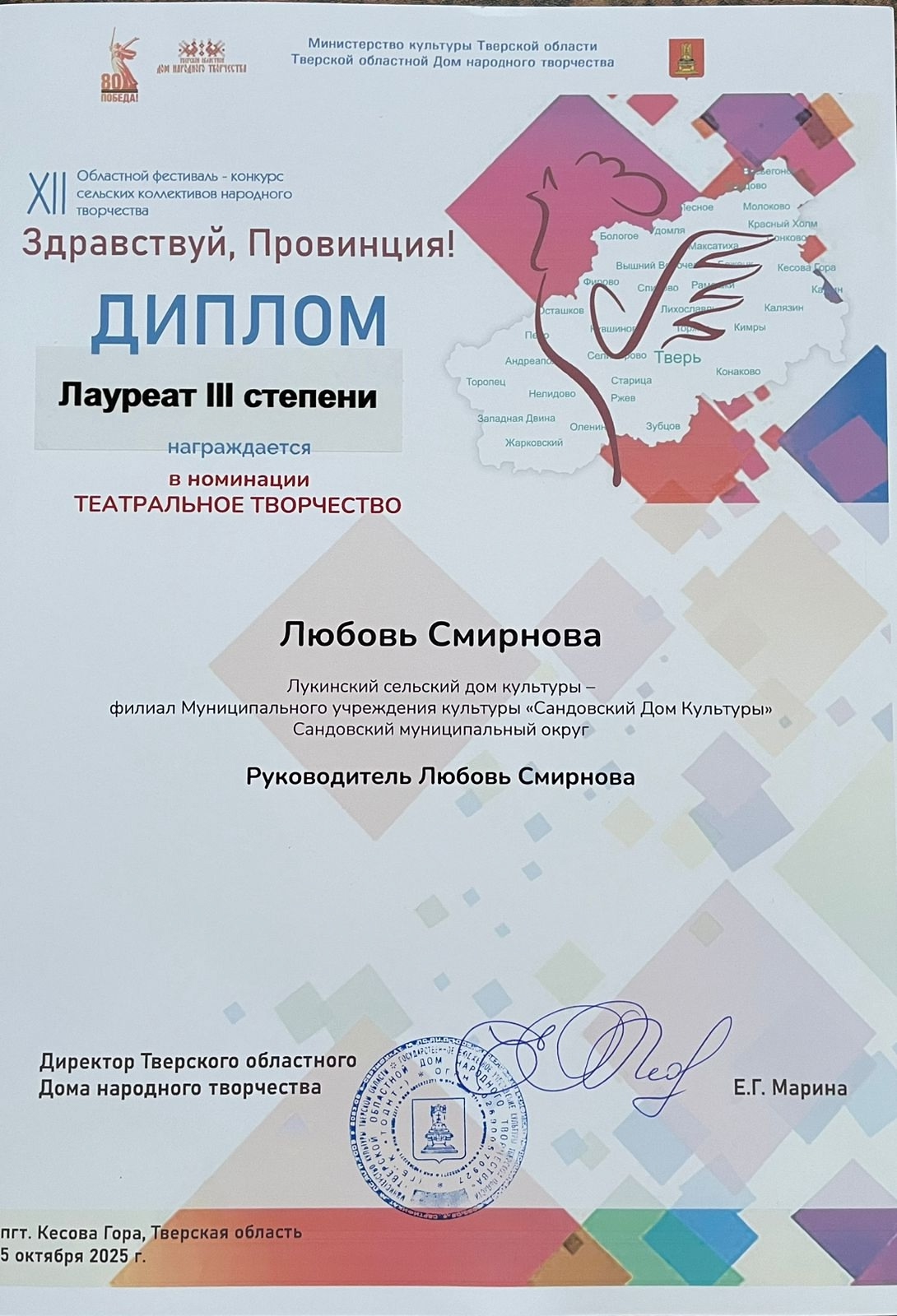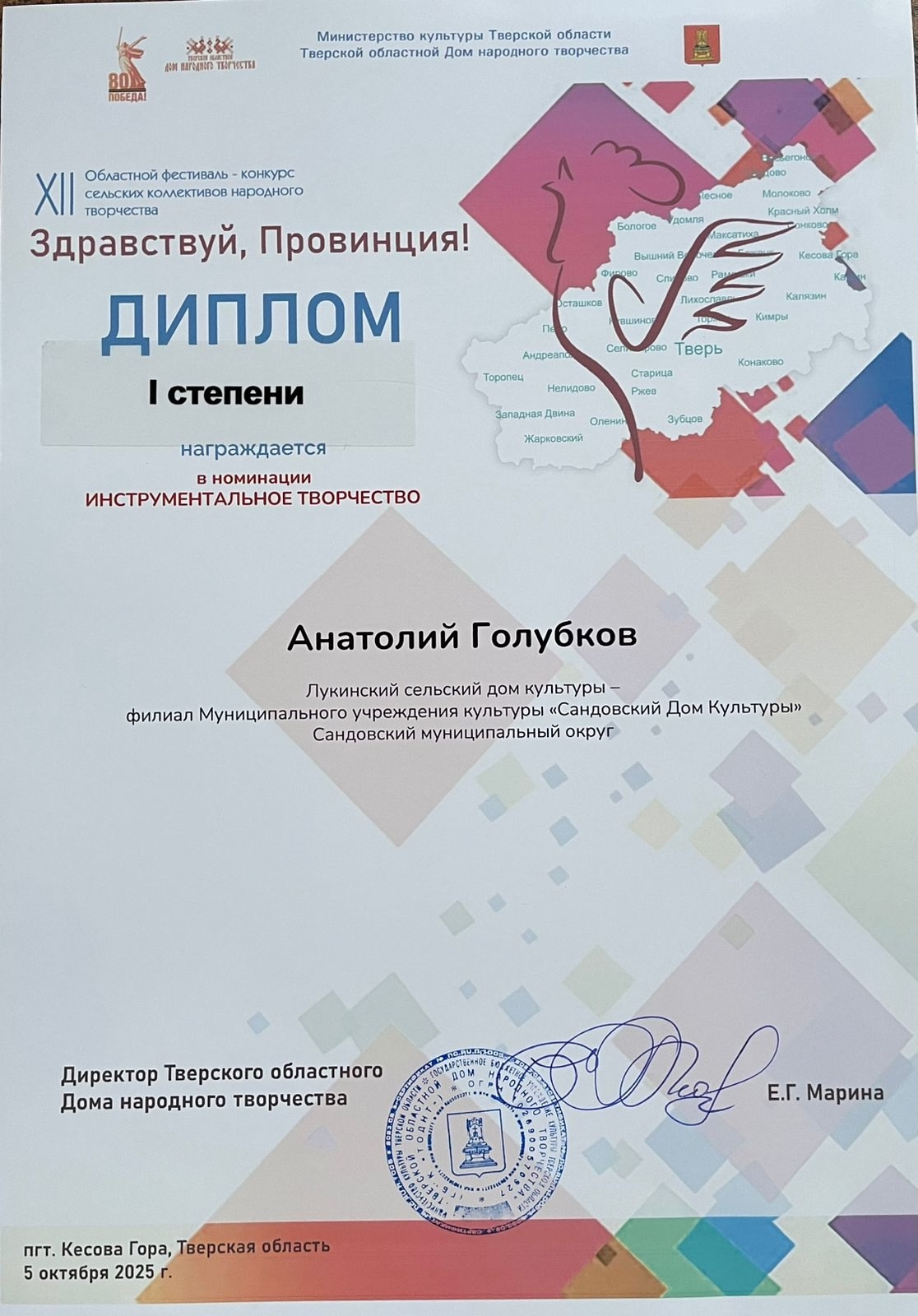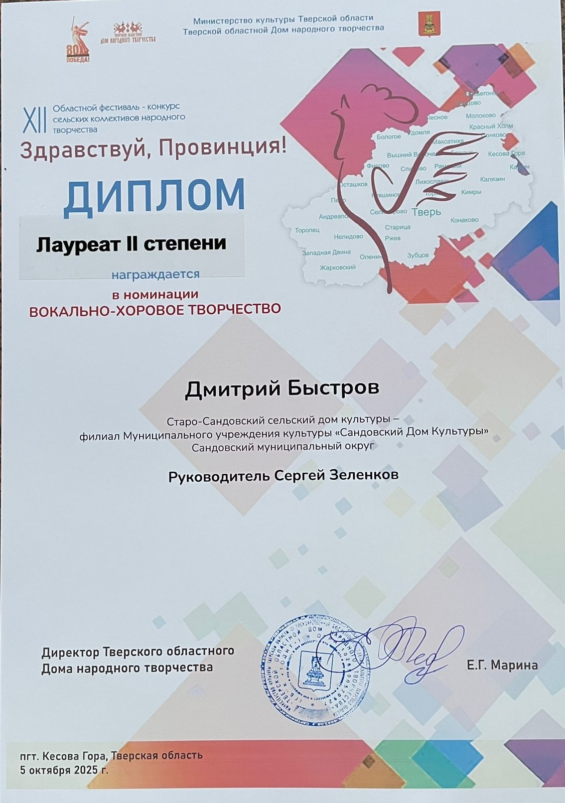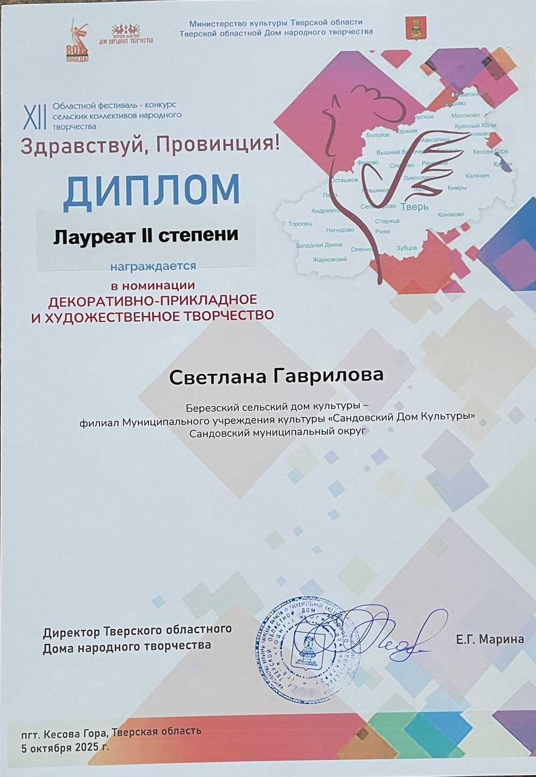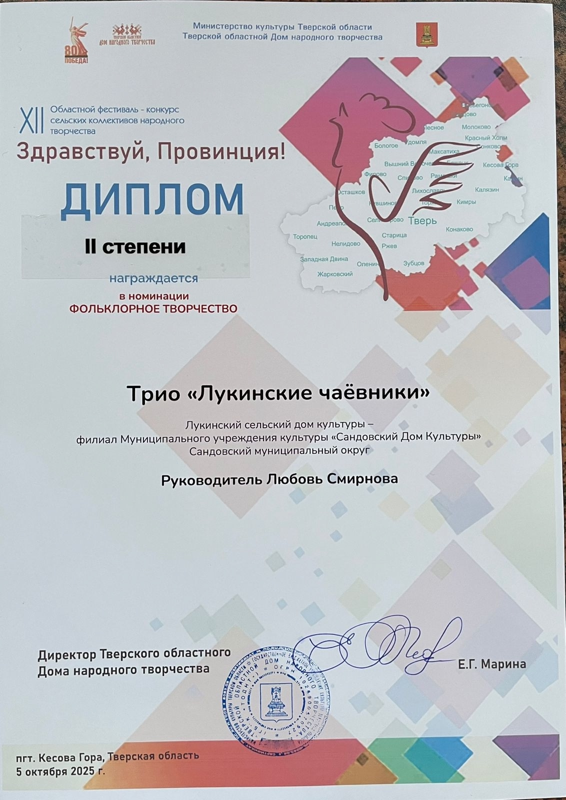05 октября в пгт Кесова Гора состоялся 12-й Областной фестиваль-конкурс сельских коллективов народного творчества «Здравствуй, Провинция».