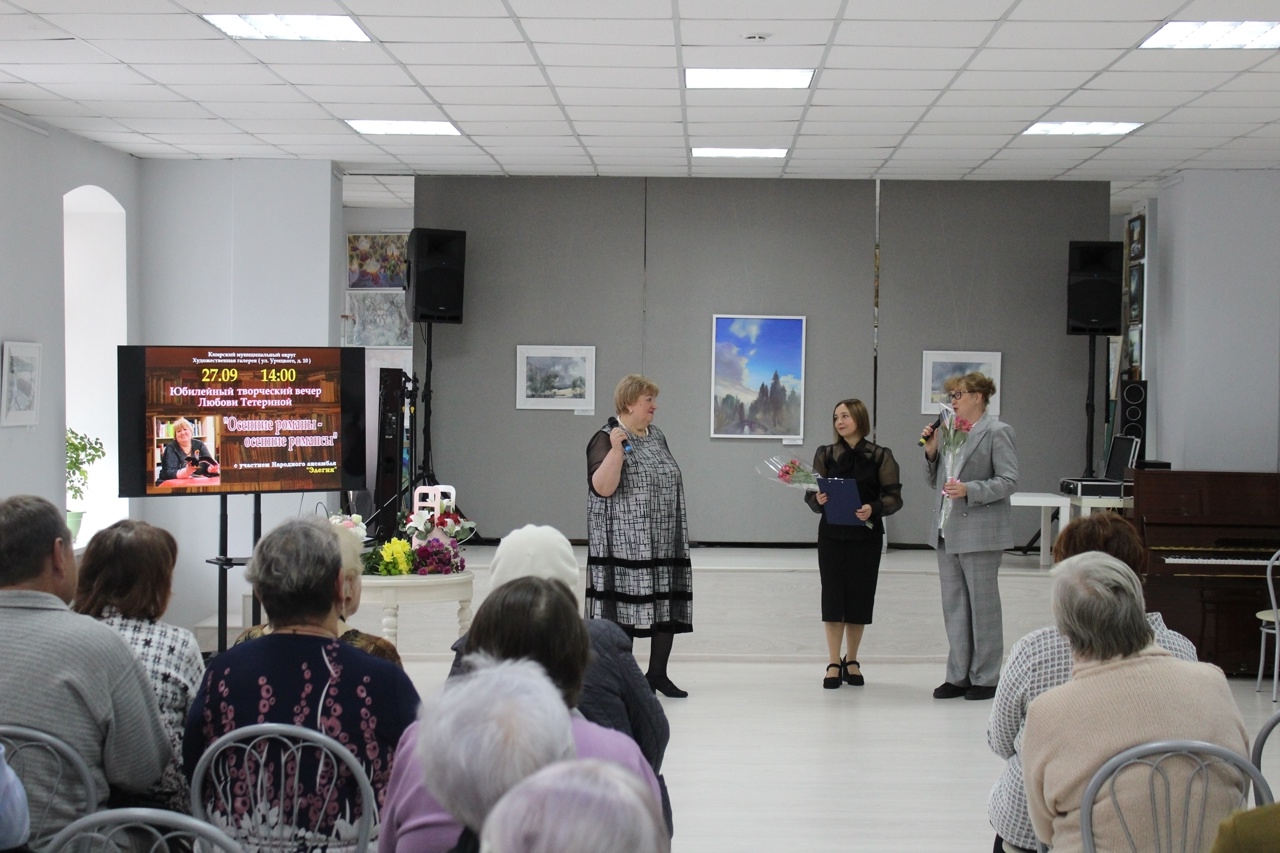 29 сентября в гостеприимном зале Художественной галереи состоялся творческий вечер члена Союза писателей России, руководителя ЛИТО «Вдохновение» Любови Анатольевны Тетериной.