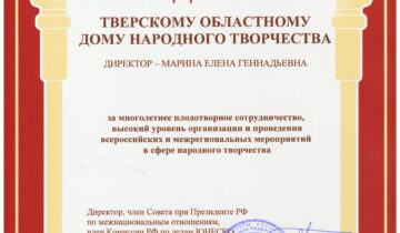 Коллектив Тверского областного Дома народного творчества благодарен за высокую оценку своей работы и выражает искреннюю признательность Государственному Российскому Дому народного…