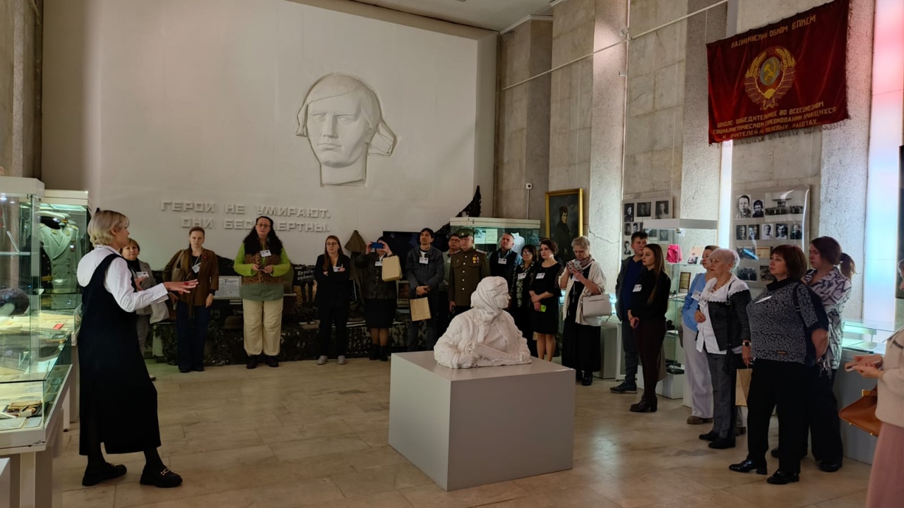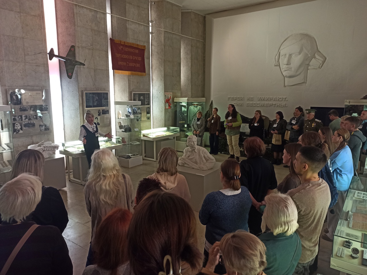 В Музейно-выставочном центре им. Л. Чайкиной Тверского областного Дома народного творчества для наших гостей Всероссийской выставки произведений художников-любителей и народных мастеров «Великому подвигу посвящается…», посвященной 80-летию Победы в Великой Отечественной войне 1941-1945 годов, прошла экскурсия на базе выставки «…Во имя тебя, Родина!».
