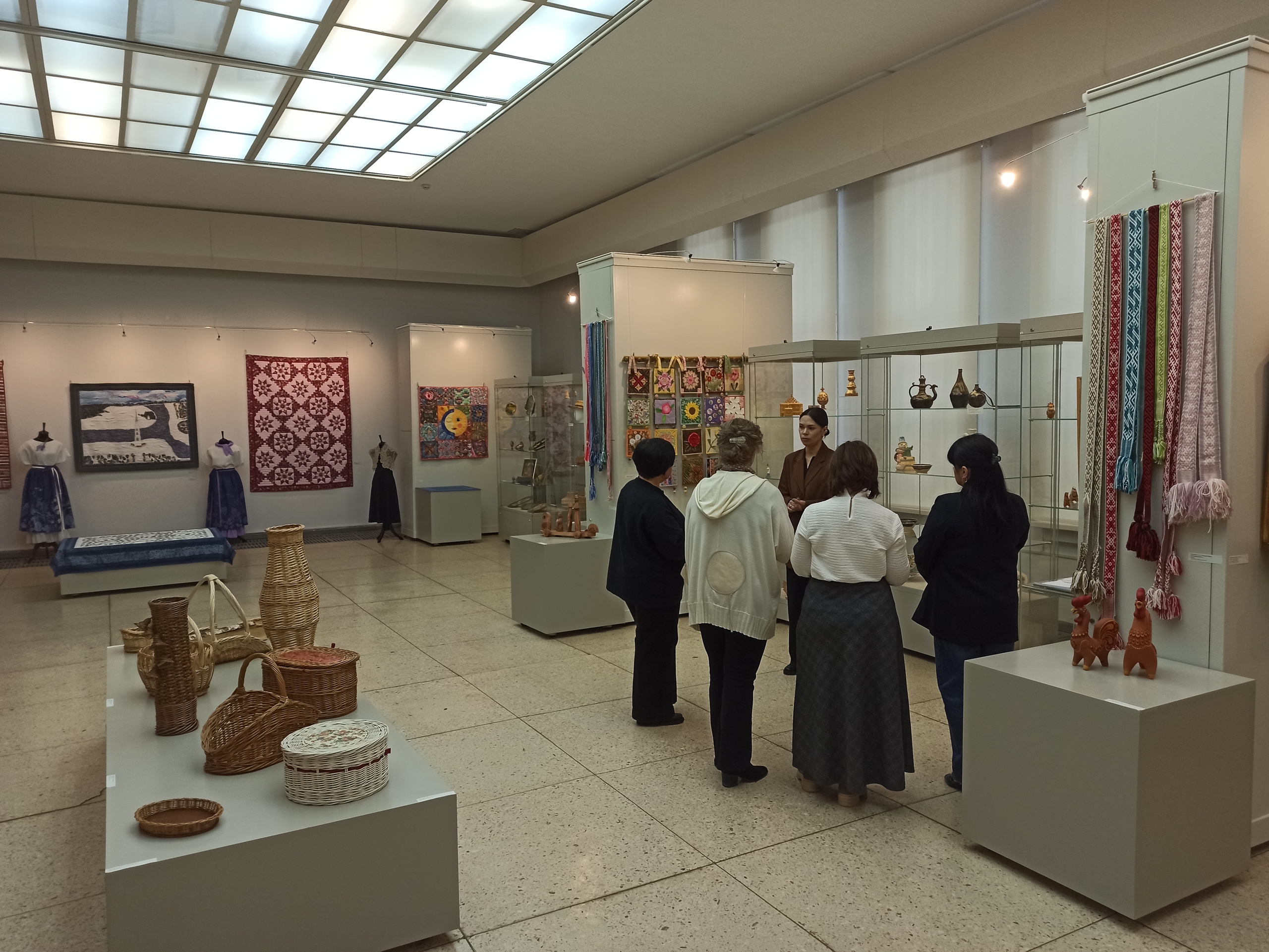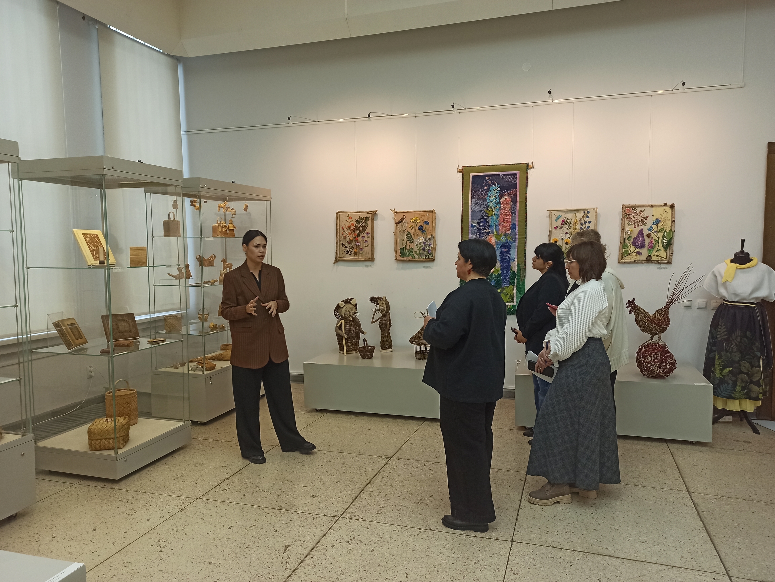 Ведущий методист Веселова Дарья Владимировна провела экскурсию по выставке победителей областного конкурса мастеров‑любителей декоративно‑прикладного искусства «Губерния мастеровая». Она познакомила гостей с титульными ремёслами Тверской области, продемонстрировав лучшие образцы вышивки, керамики, резьбы по дереву, ткачества и других видов народного искусства. Каждый экспонат сопровождался рассказом о технологиях изготовления, региональных особенностях и современных интерпретациях традиционных техник.