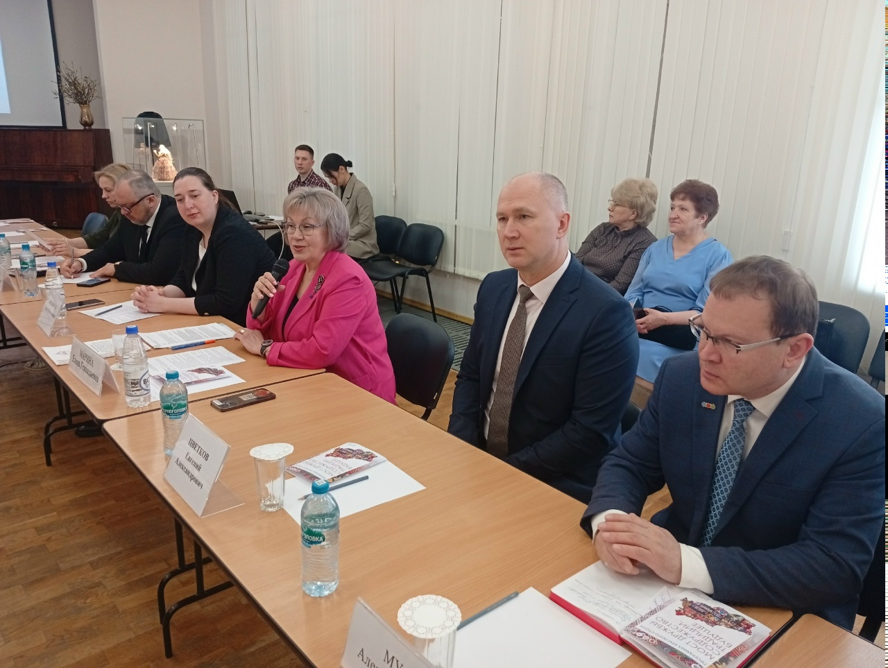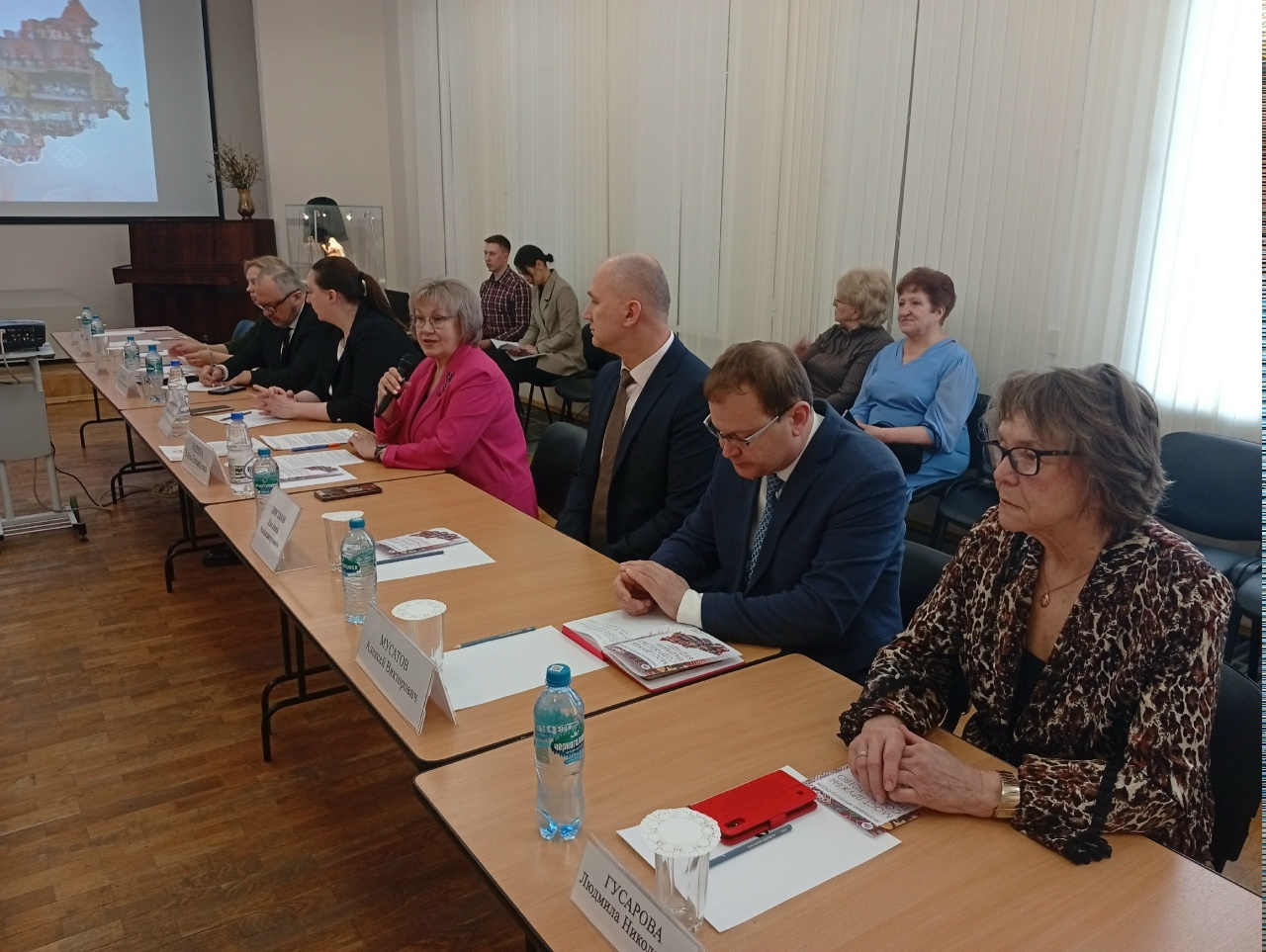 Также в работе Круглого стола приняли участие: Маматкова Наталия Васильевна – начальник Отдела развития государственных учреждений культуры; Дотмерзуев Беслан Рашидович – представитель Тверской региональной общественной организации «Межнациональное объединение “ВАЙНАХ”; Майбалиев Махтобшо Хушвактшоевич – представитель Общественной организации «Национально‑культурная автономия таджиков города Твери и Тверской области», член Союза художников Таджикистана, член Союза художников России.