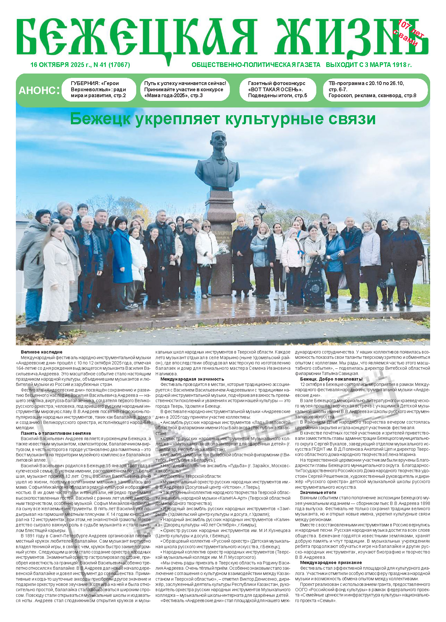 Этот масштабный фестиваль объединил талантливых музыкантов, мастеров традиционного искусства и любителей народной музыки со всего мира. Репортаж Бежецкое телевидение, МОЛОГА.ИНФО расскажет о том, как проходил фестиваль на родине Василия Андреева в г. Бежецке.