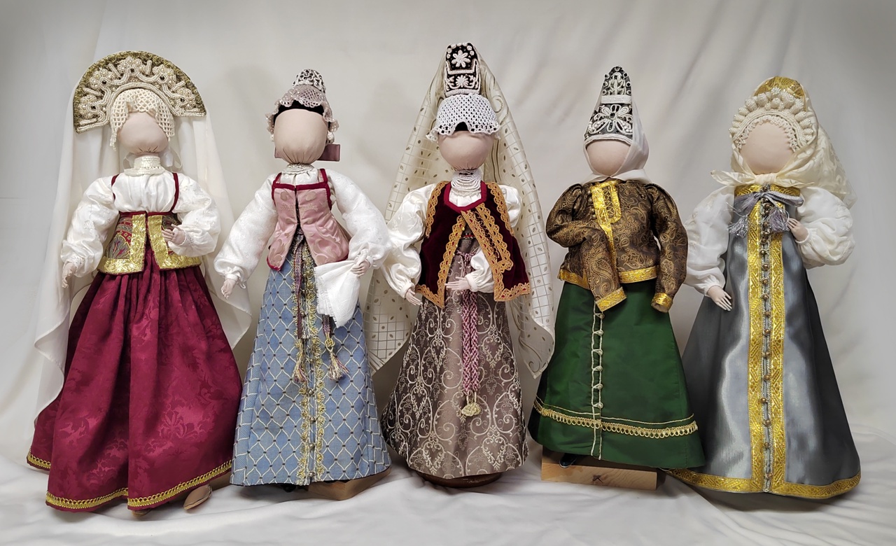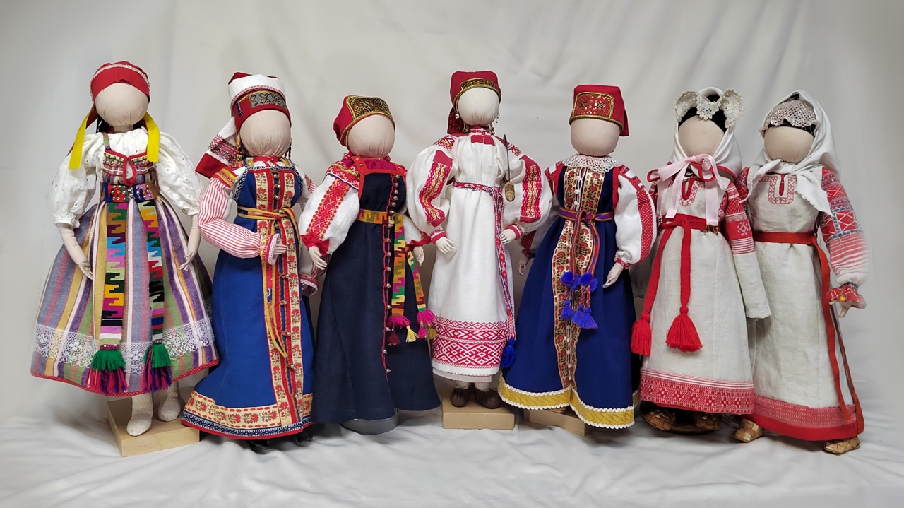 В данной коллекции — 7 кукол, костюмы которых выполнены с соблюдением технологических приемов в уменьшенном масштабе. Ткачество, вышивка, изготовление обуви, крой сарафанов, плетение и ткачество поясов, верховая набойка — всё это использовано в работе над одеждой этой коллекции.
