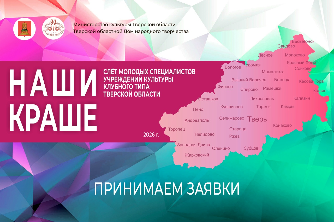 Приглашаем к участию во II Слёте молодых работников культуры Тверской области «НАШИ КРАШЕ» молодых специалистов в возрасте до 35 лет: художественных руководителей, методистов, культорганизаторов, руководителей клубных формирований и административно-управленческого аппарата.