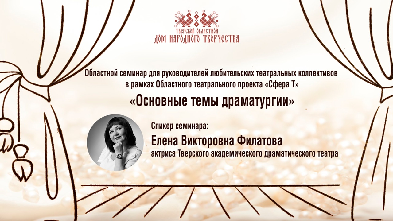 Тверской областной Дом народного творчества приглашает на областной семинар руководителей любительских театральных коллективов в рамках Областного театрального проекта «Сфера Т», который состоится по адресу г. Тверь, пл. Святого Благоверного Князя Михаила Тверского, д. 3