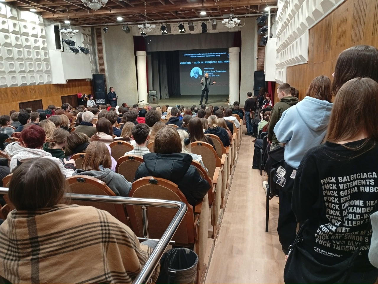 Залим Хажмирзович объяснил слушателям различия в работе актеров и режиссеров в театре и кино, раскрыл секреты создания образов героев на сцене и экране.