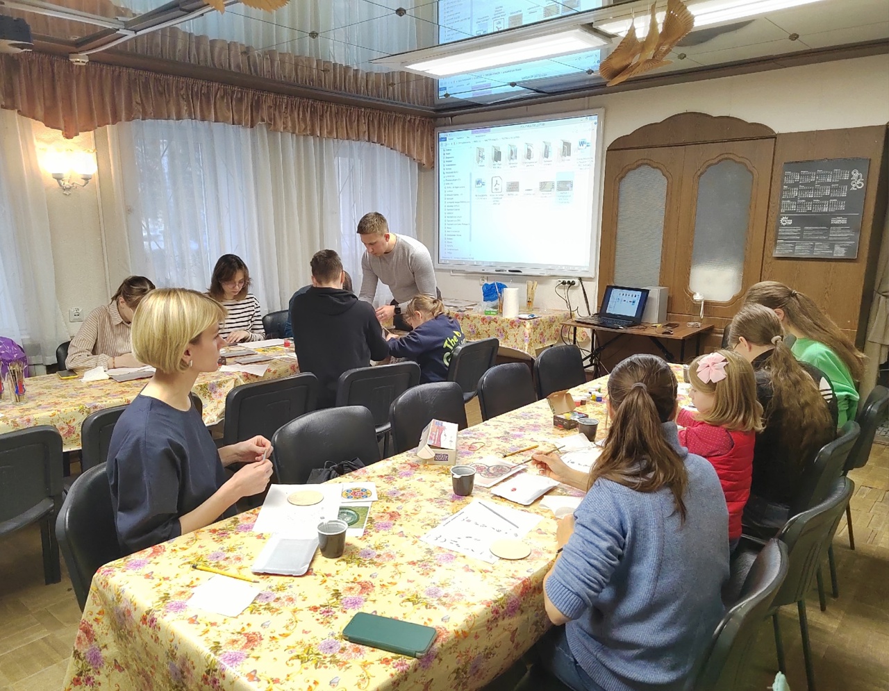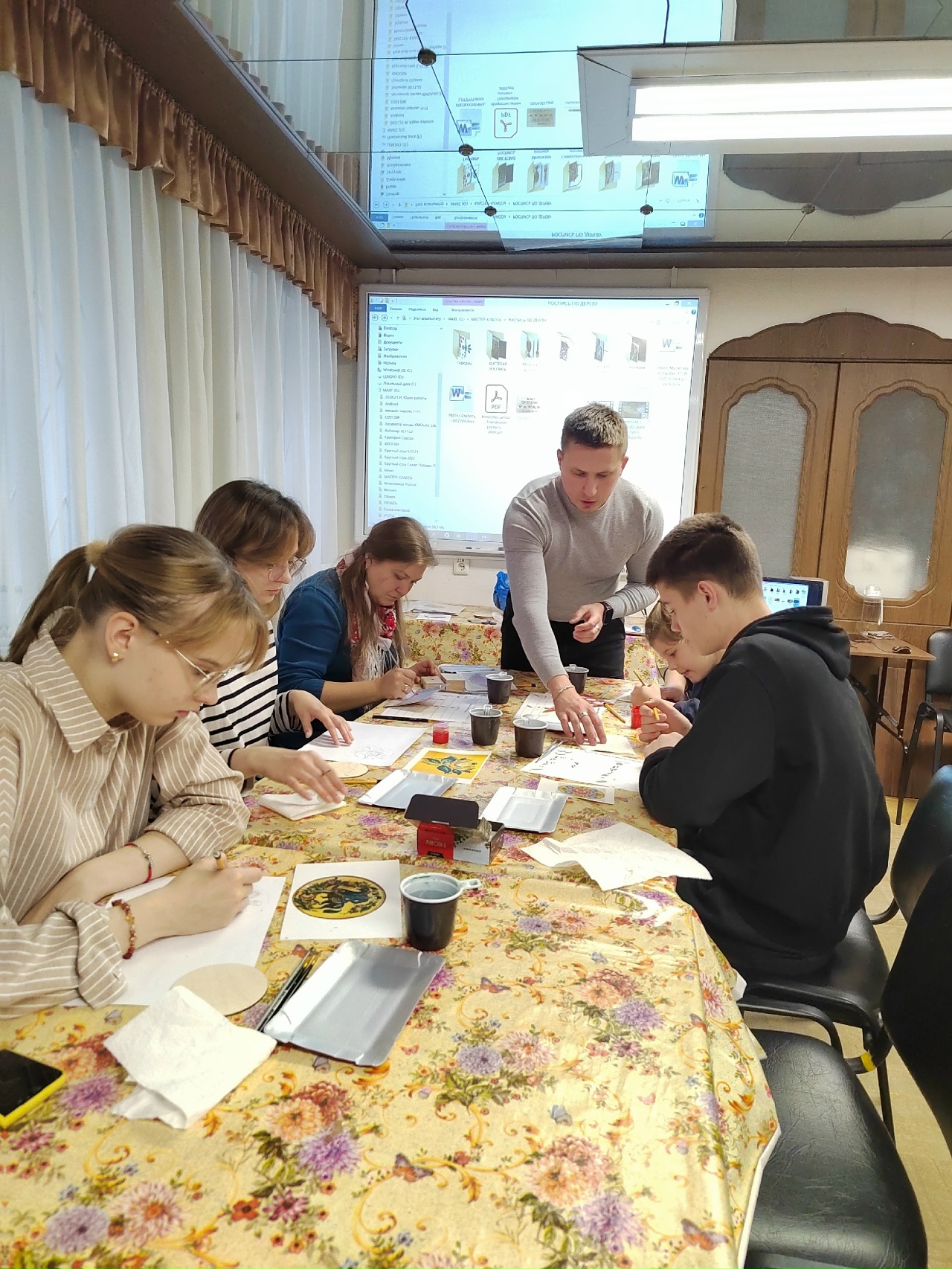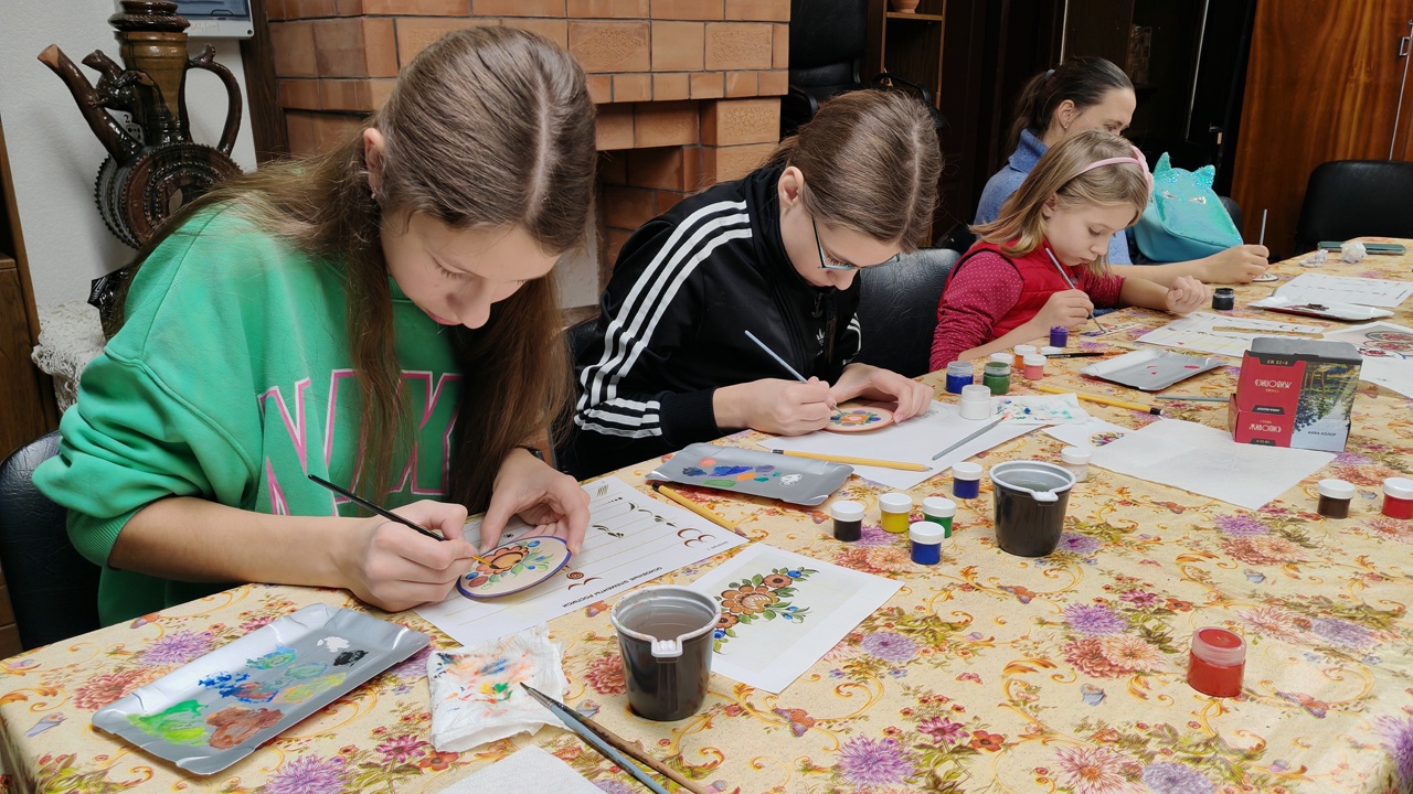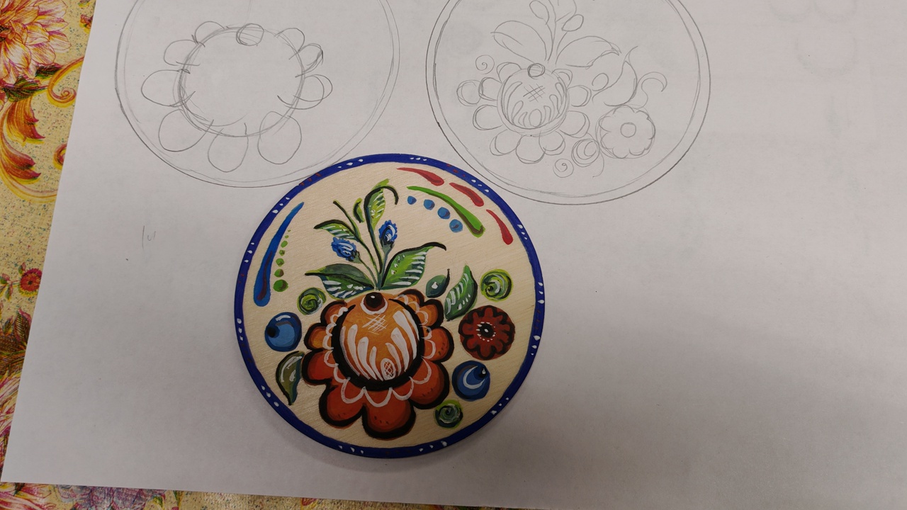 Наши гости освоили основные этапы создания расписного деревянного изделия: научились шлифовать заготовки, переносить рисунки и, конечно же, выполнять узоры с помощью кисти и красок.