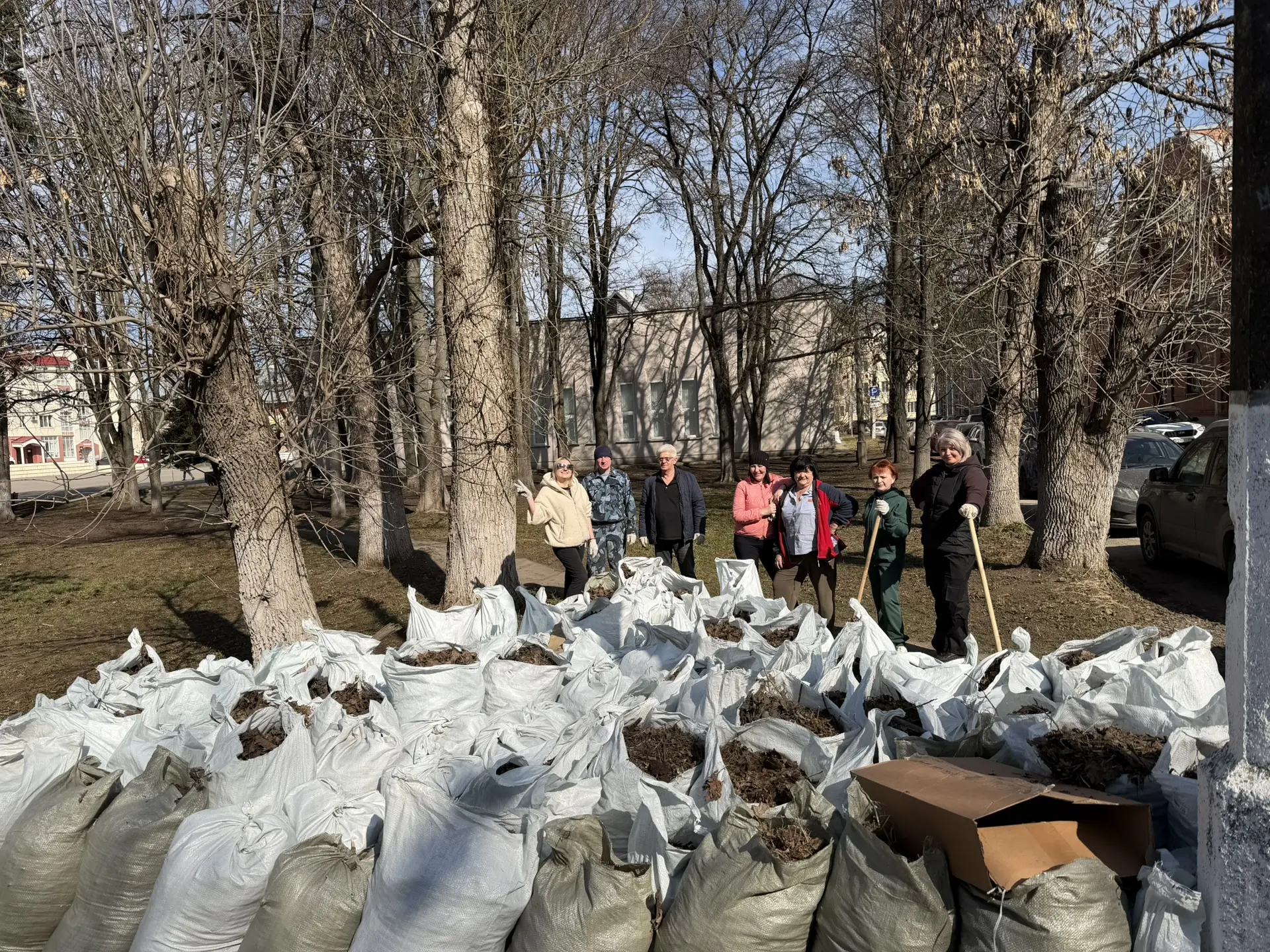 День выдался по-настоящему весенним: яркое солнце и тёплая погода добавили всем отличного настроения. Коллектив дружно и с энтузиазмом взялся за работу: убрали опавшую листву, подмели дорожки, собрали мусор и очистили территорию от упавших веток