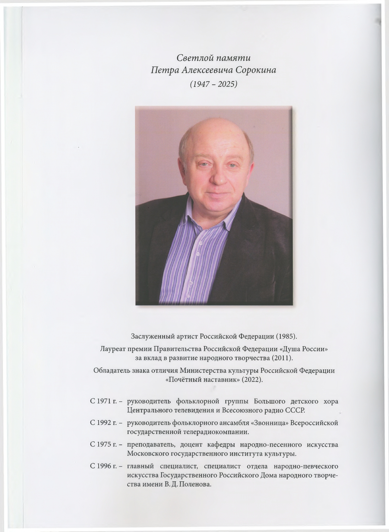 У нас новое поступление в архивно-библиотечный фонд Тверского областного Дома народного творчества. Предлагаем вашему вниманию  репертуарно-методическое пособие  «Танечки- Матанечки» Русские имена в песенном фольклоре» Петра Алексеевича Сорокина,  Заслуженного артиста Российской Федерации, Лауреата премии Правительства  Российской Федерации «Душа России», обладателя Знака отличия Министерства культуры Российской Федерации «Почетный наставник».