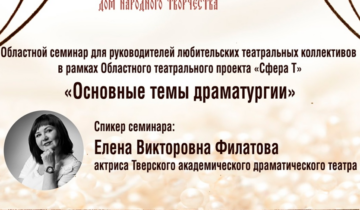 Тверской областной Дом народного творчества приглашает на областной семинар руководителей любительских театральных коллективов в рамках Областного театрального проекта «Сфера Т»,…