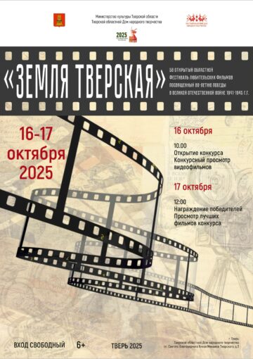 17 октября Тверской областной Дом народного творчества приглашает на 58-ой областной открытый фестиваль любительских фильмов «Земля Тверская», посвященный 80-летию Победы в Великой Отечественной войне 1941-1945 годов
