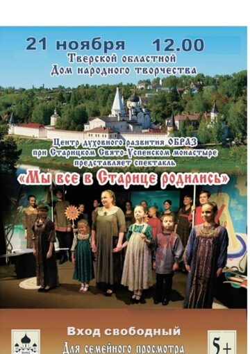 Все мероприятия21 ноября в 12:00 в Тверском областном Доме народного творчества (площадь Святого Благоверного Князя Михаила Тверского, 3) состоится спектакль «Мы…